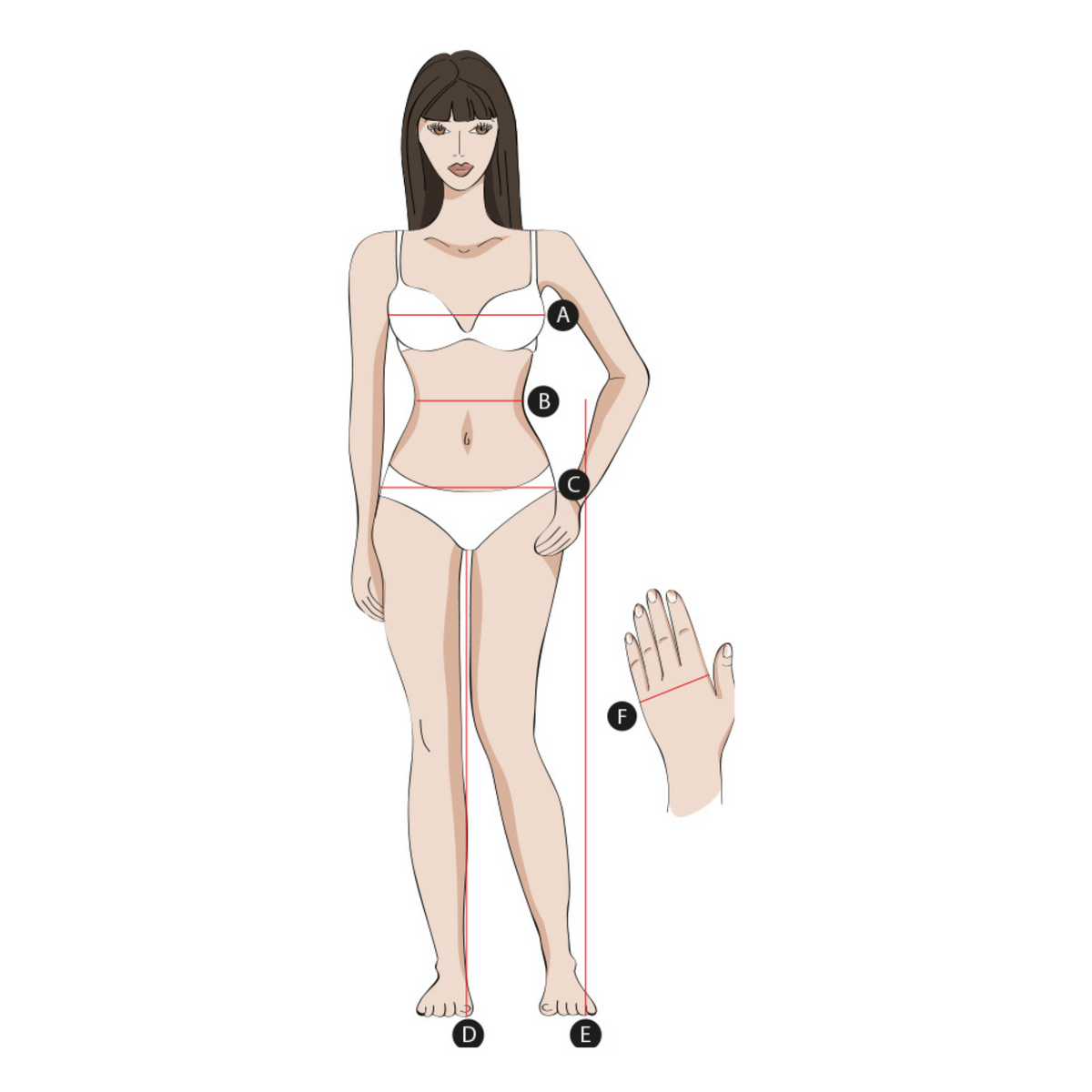 Alle Maße sollten eng am Körper gemessen werden, denn alle Angaben sind sogenannte „Körpermaße“ und sind in cm angegeben.